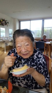 お誕生日の方にはロールケーキを、食べられない方にはゼリーにホイップクリームを乗せて提供いたしました。